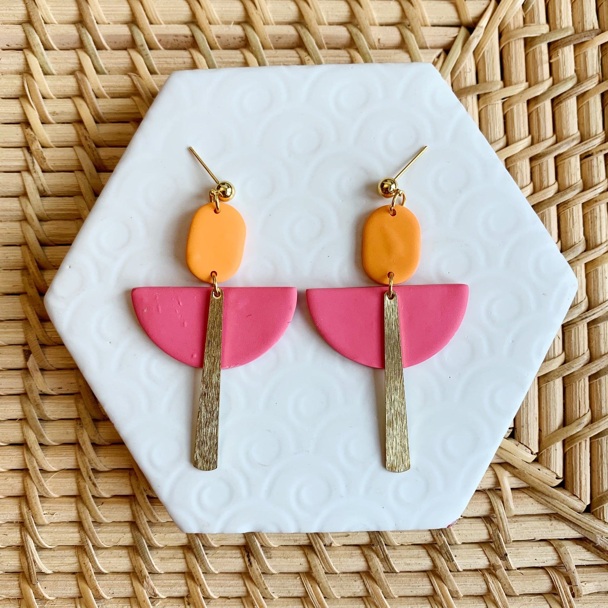 Flame Orange and Pink Art Deco Ball Stud Earring