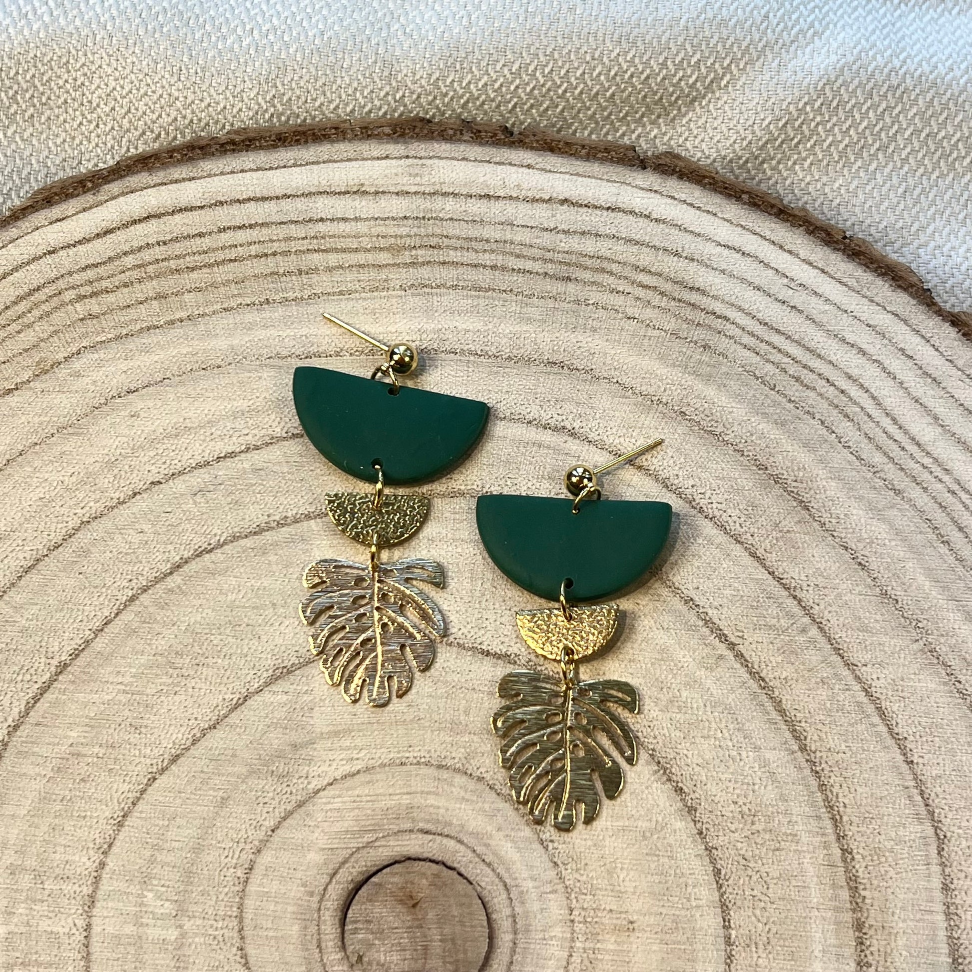Gracie Green Brass Leaf Ball Stud Earring