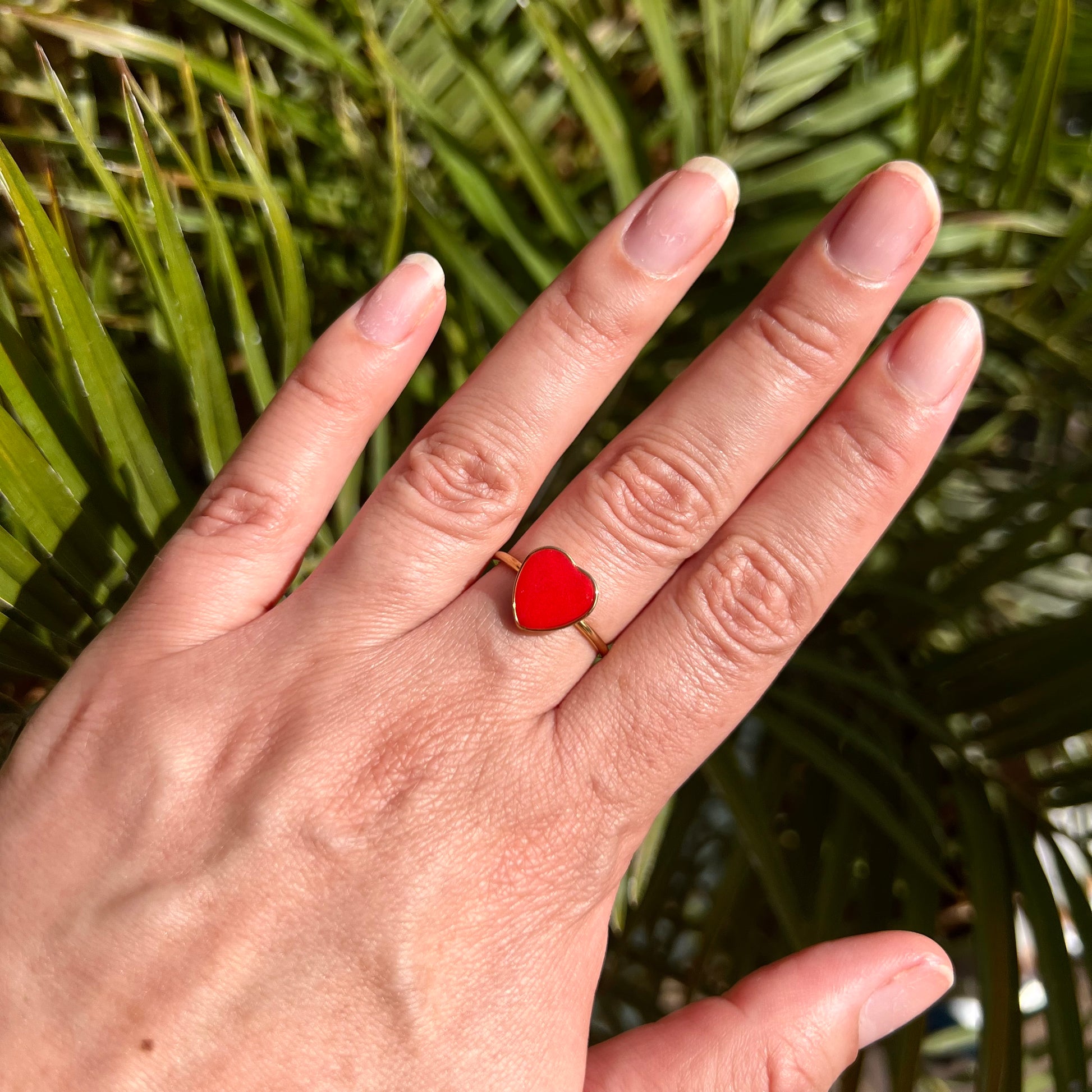Heart Red and Gold Adjustable Ring