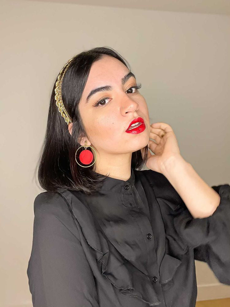 Arlo Red Circle & Large Hoop Ball Stud Earring